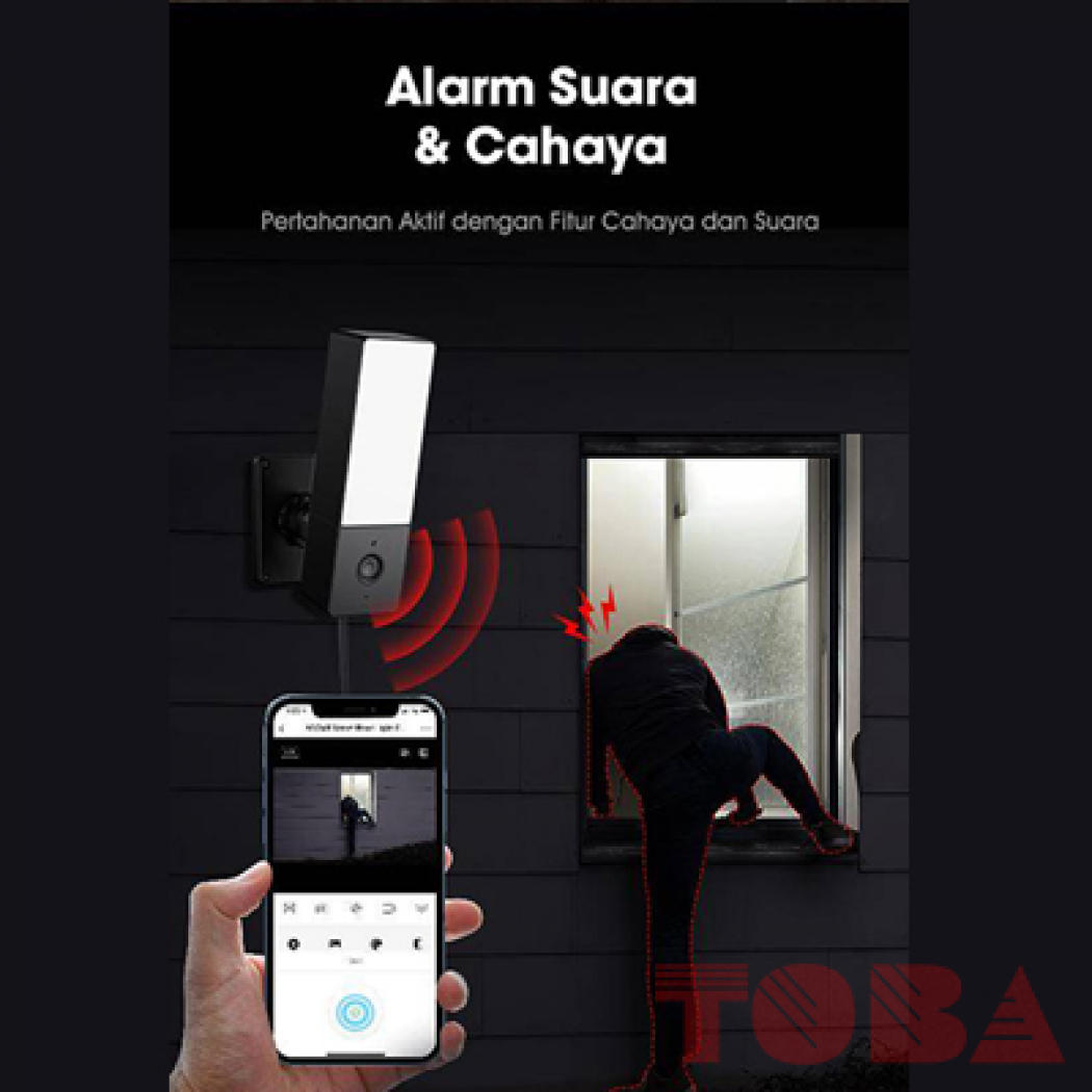 Alarm Cahaya: Lampu sorot dapat menyala secara otomatis sebagai bagian dari sistem alarm saat terdeteksi gerakan mencurigakan.